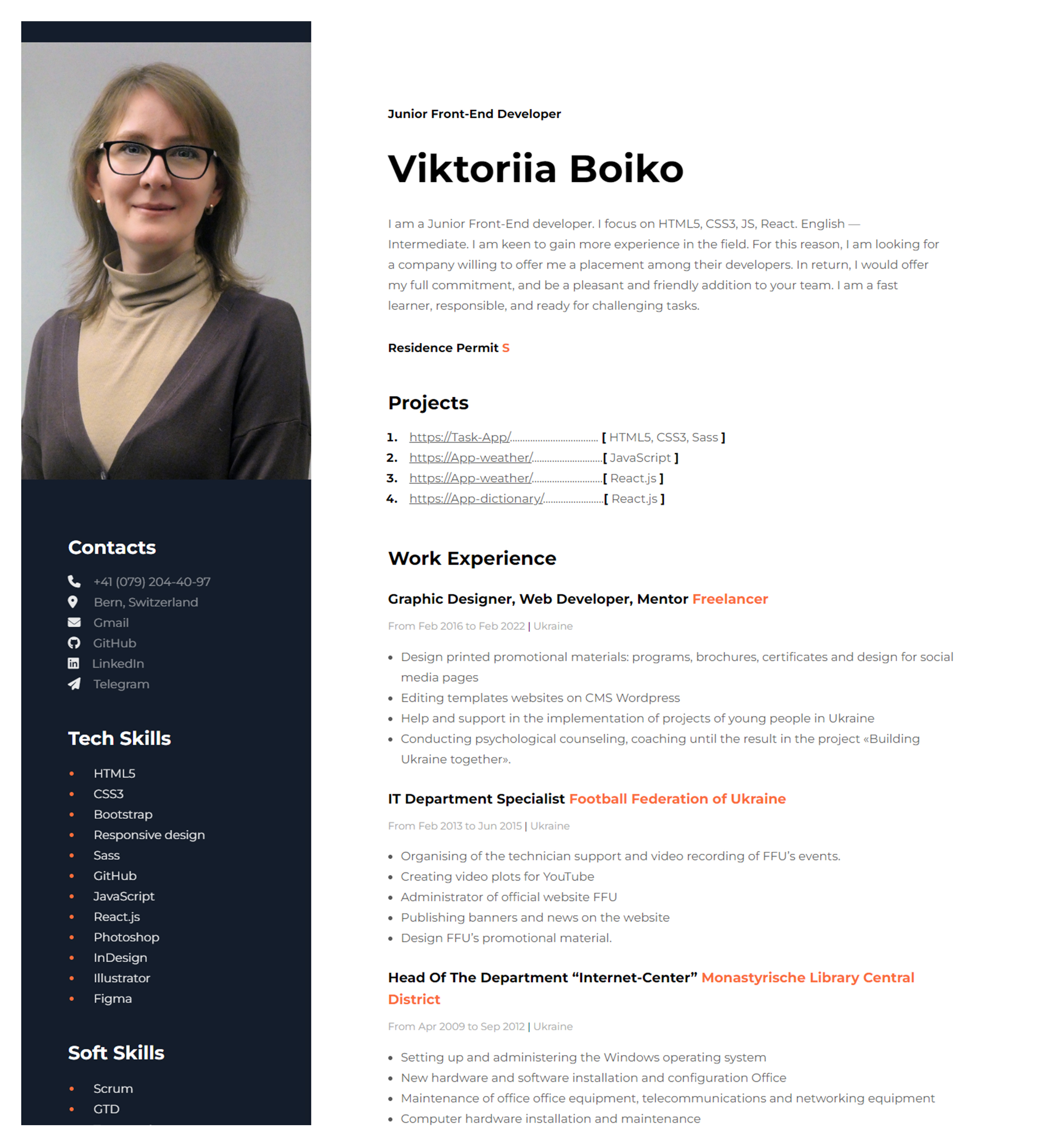 My cooperation with Viktoriia began a long time ago. Almost all of my projects were designed by her. I would like to note the peculiarities of her work: quick implementation of the project according to the terms of reference; high-quality selection of colours, sometimes somewhat contrary to the initial design, but this always improved the result in the future; technical support and consideration of wishes; mobility - changing the project if necessary, constant communication and punctuality, high quality of work; use of modern software, the latest methods and trends.